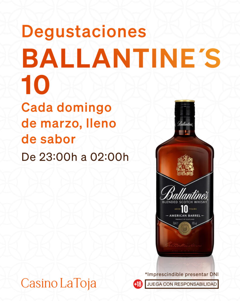 Degustaciones de Ballantine’s 10 en Casino La Toja todos los domingos de Marzo, de 23:00h a 02:00h. Vive una noche especial y disfruta del mejor whisky.