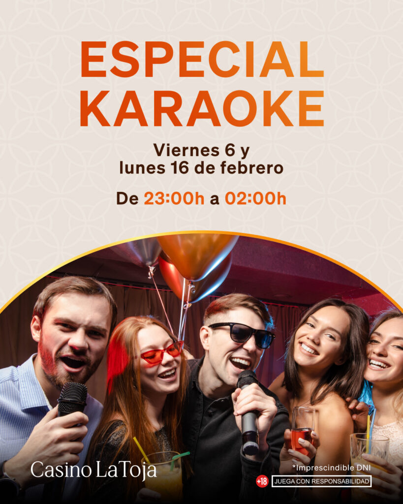 Vive una noche inolvidable de karaoke en el Casino de La Toja el 6 y 16 de febrero, de 23:00 a 02:00. Música en directo, risas, amigos y el mejor ambiente.